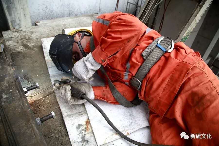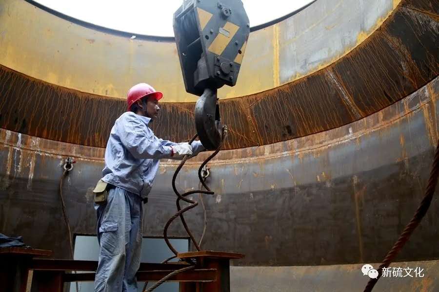 穿戴好勞保用品,系好保險帶,“噔、噔、噔”爬上5米高的浮選機槽體底座。高臺作業(yè),電焊小組自動升級成為“焊高組”。從早上8點,幾名好“焊”就在高臺底座上沒下過地。今天是“東西翼礦石選礦技改工程”最為關(guān)鍵的一天——吊裝浮選機槽體,最小的槽體重達12砘,最大的更是超過20噸。起吊、安裝、調(diào)試難度大,還要考慮工期。要在最短的時間,高效、高質(zhì)量地完成上述工作——返工?絕對不允許?。?!
