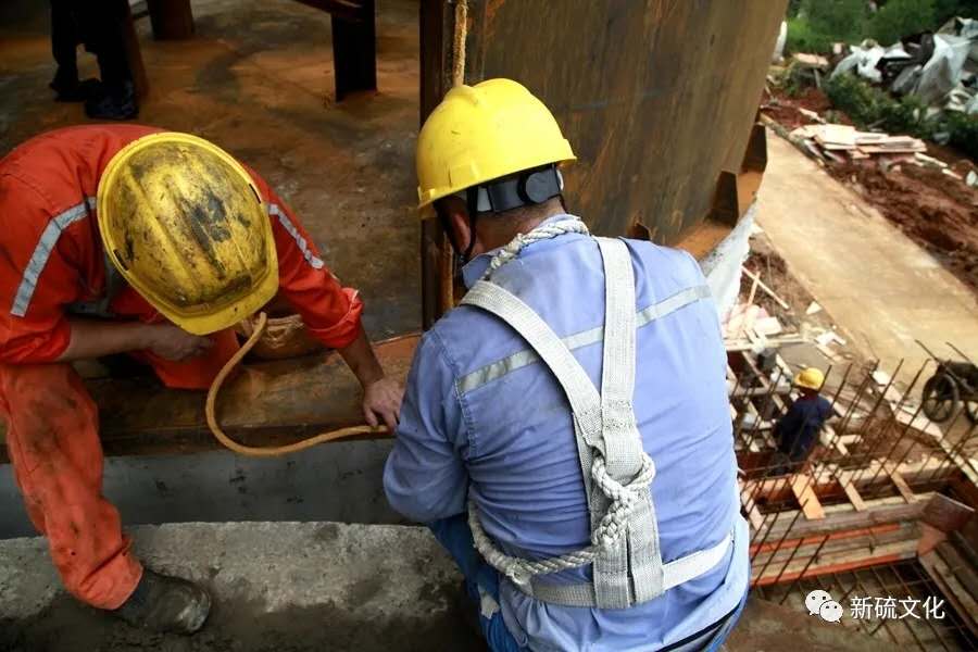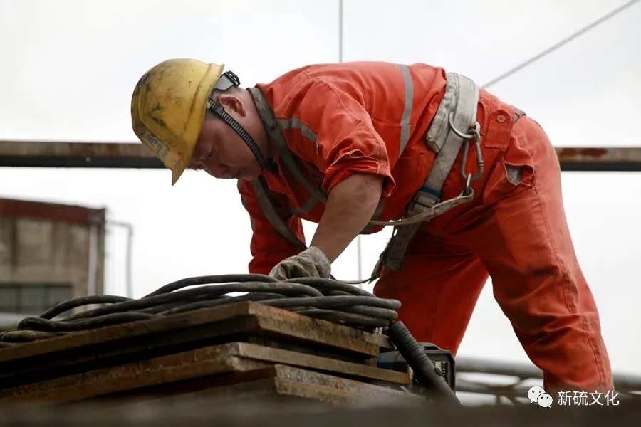 地面上大吊車、大貨車,選礦廠相關(guān)負(fù)責(zé)人、技術(shù)人員、安全員等忙著起吊龐然大物時,“焊高組”在底座上也一刻沒閑著,拖運電焊設(shè)備、準(zhǔn)備焊接材料、在底座上鋪水泥保持平面,各個槽體支腳找平衡......由于底座緊挨著磨浮車間,空氣不流通,加上天氣悶熱難擋,武裝整齊的好“焊”們一會就汗?jié)窳斯ぷ鞣怪轫樦踩眽褐陌l(fā)根往下滾。