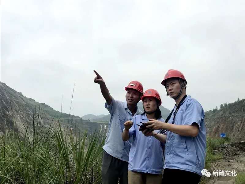 在露天采場頂板邊坡負(fù)48米平臺上,生產(chǎn)部技術(shù)人員正在用無人航拍飛行器對地質(zhì)災(zāi)害易發(fā)生點巡查、拍照。