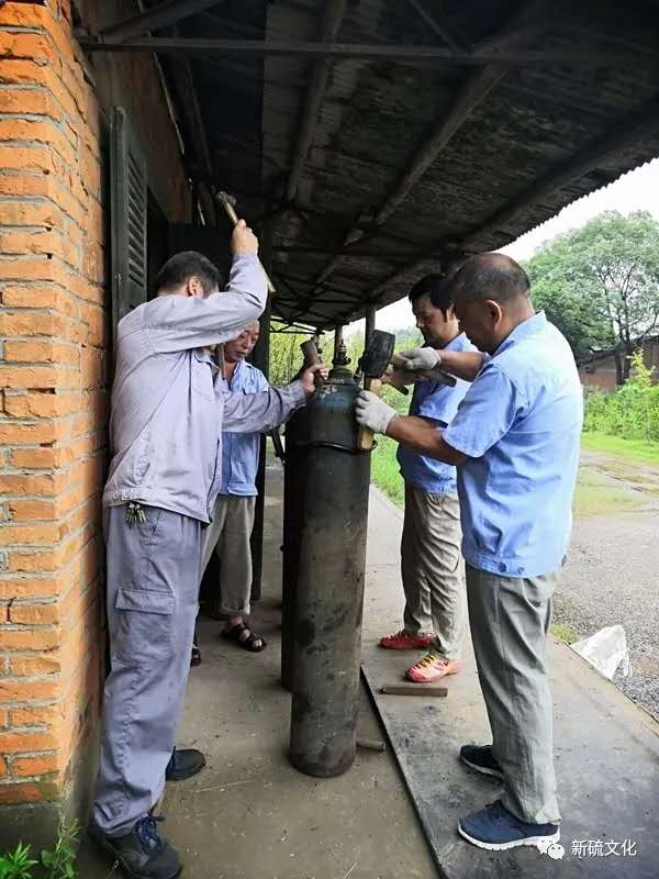 安裝防震圈是一門“技術(shù)”活。為保證防震圈的穩(wěn)固,使用過程中不易脫落,防震圈的內(nèi)徑需略小于氣瓶直徑,我們采取用開水浸泡的方式,讓其受熱膨脹,然后將防震圈的圓心與氣瓶軸線相對齊;為了保護(hù)氣瓶不受損傷,必須使用木質(zhì)手錘沿著氣瓶瓶身敲擊防震圈,直至防震圈達(dá)到預(yù)設(shè)位置。每個氣瓶都需要在首尾兩端套上兩個防震圈。